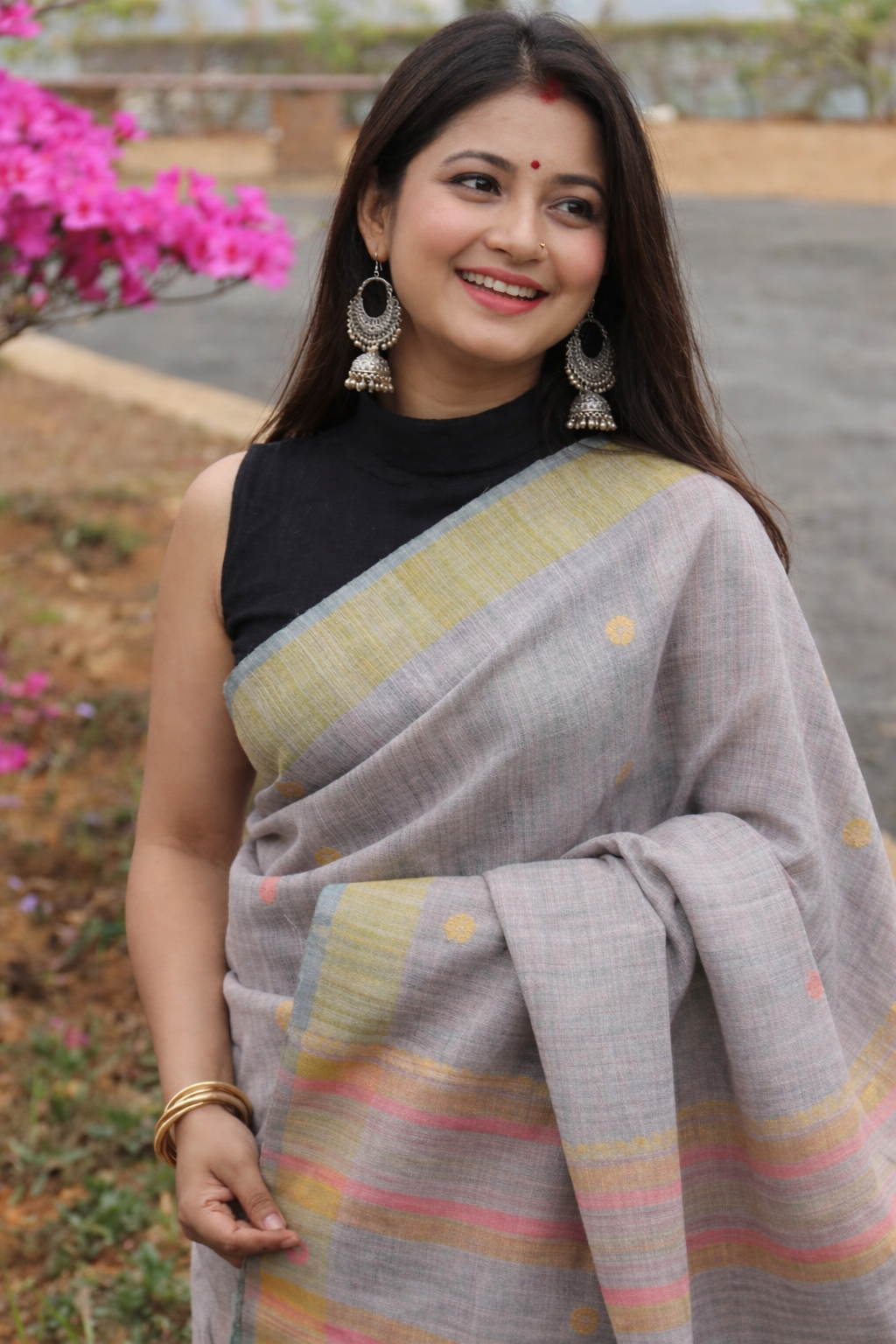 This authentic handloom, handwoven saree is made in Guwahati, Assam; comes with a contrast blouse piece.